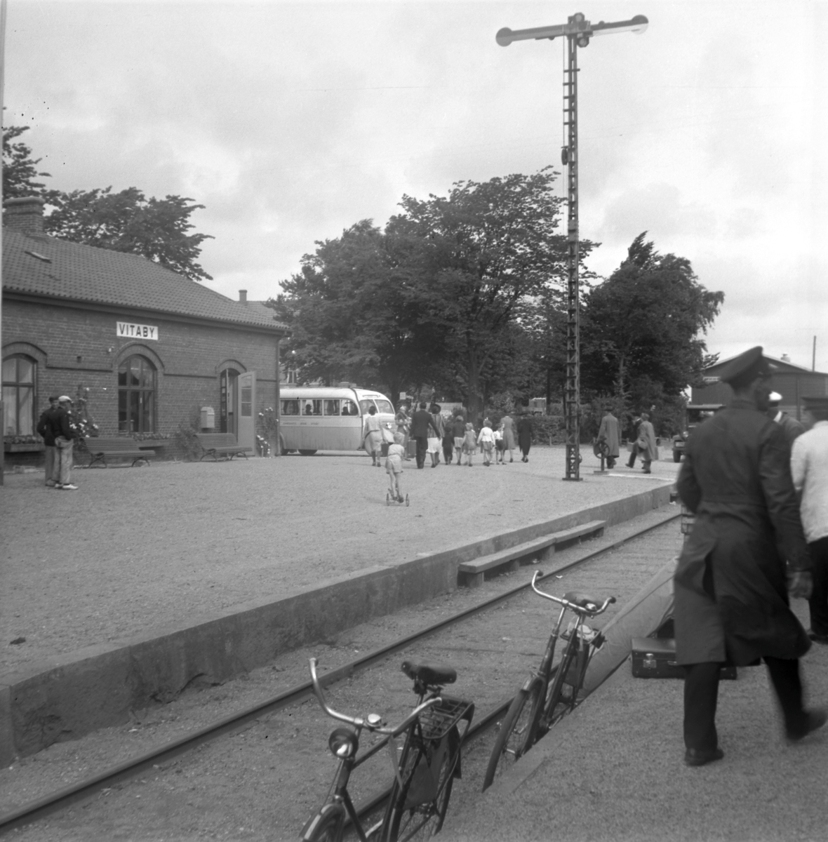 Titel: Vitaby järnvägsstation. Gengasbuss i bakgrunden.