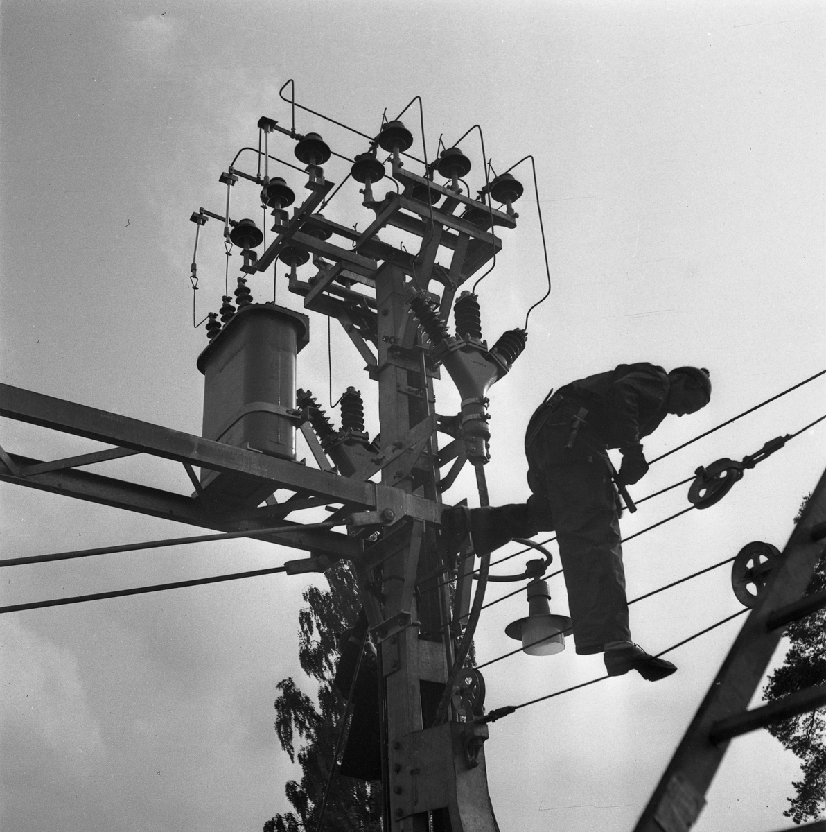 Titel: Arbetsbild på elektrifieringsarbeten på sträckan Varberg-Strömstad vid Vargön
