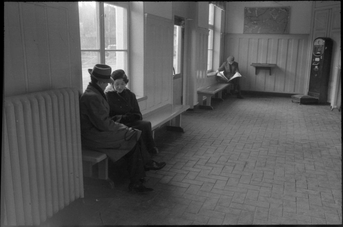 Titel: Resenärer i väntsalen.