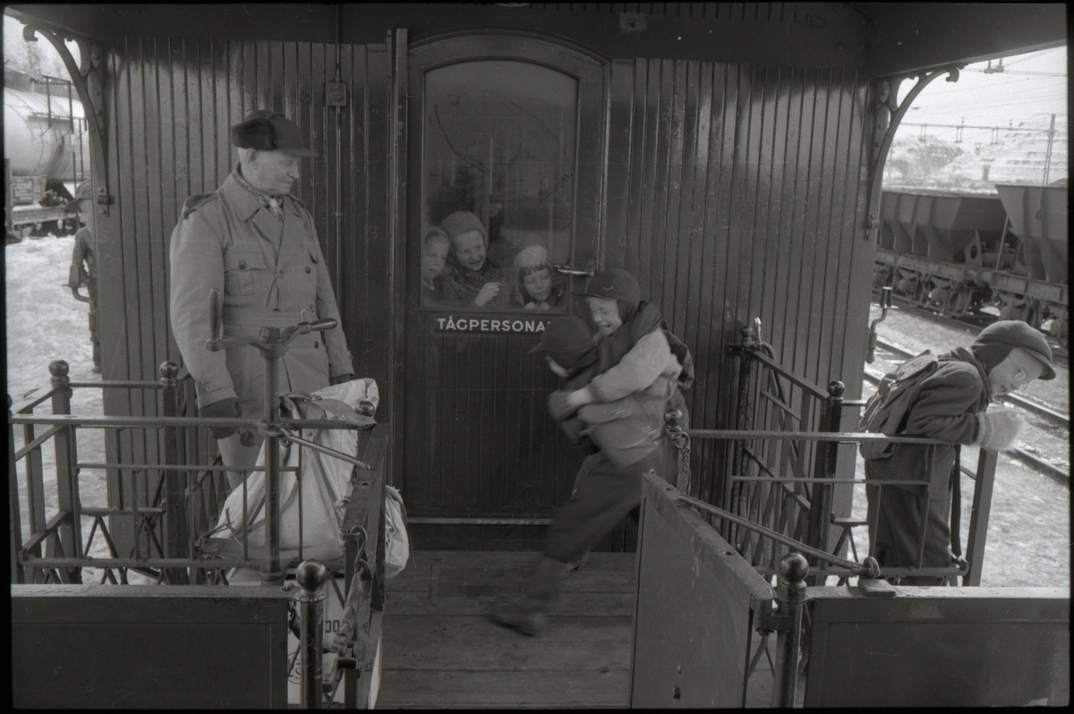 Titel: Barn bråkar vid ett stopp på en station