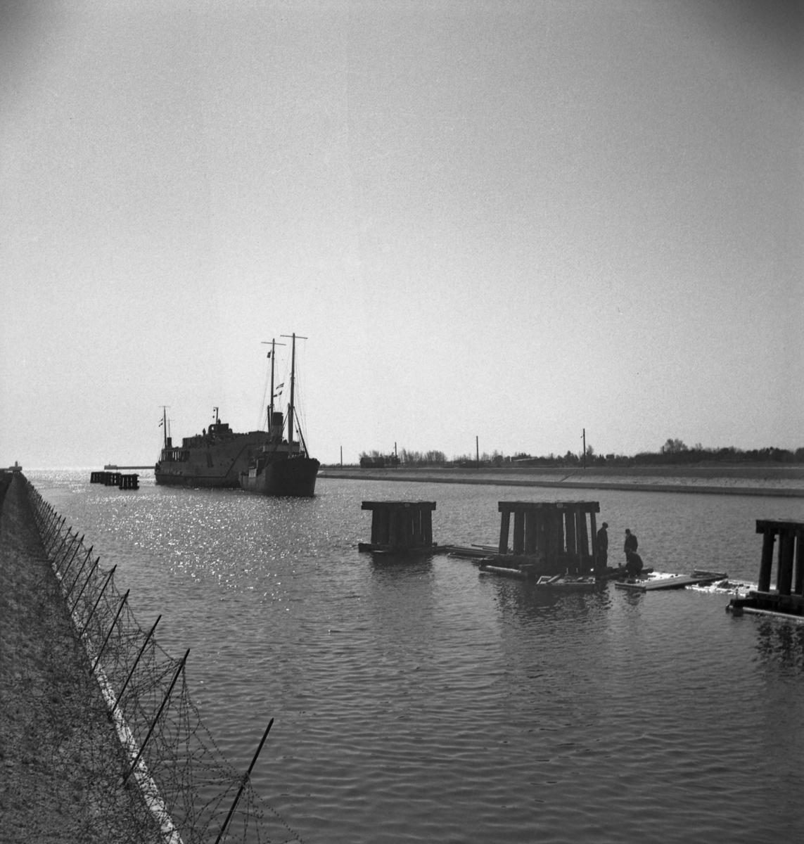 Den förlista isbrytande färjan Starke bogseras efter bärgning. Här i Falsterbokanalen på väg till Kockums i Malmö.