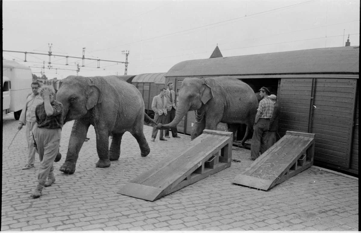 Avlastning av djur från godsvagn.