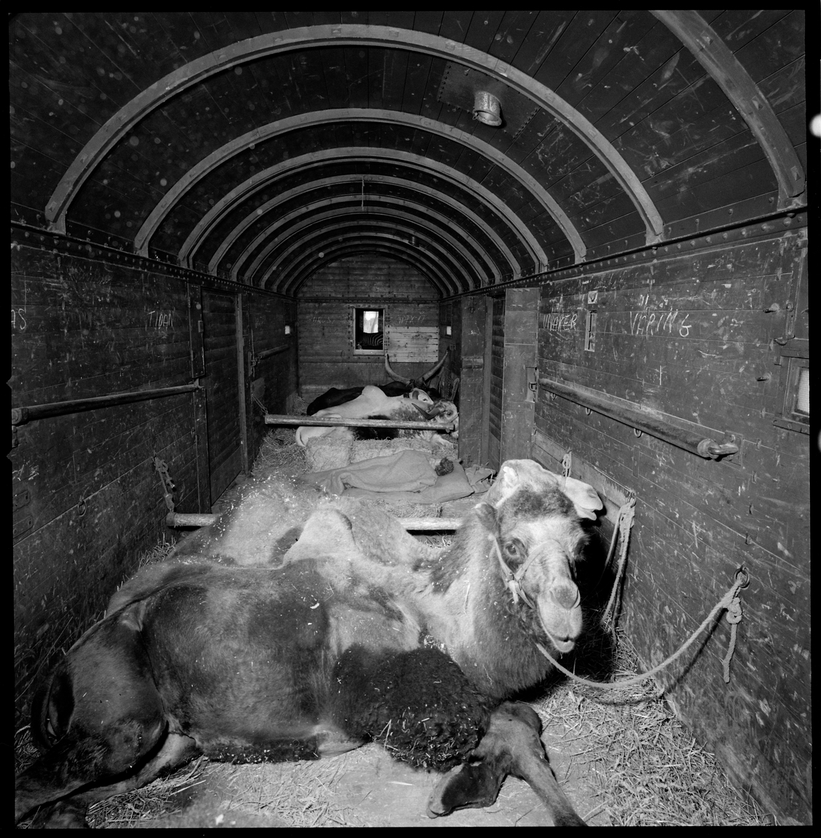 Titel: Djur i godsvagn.