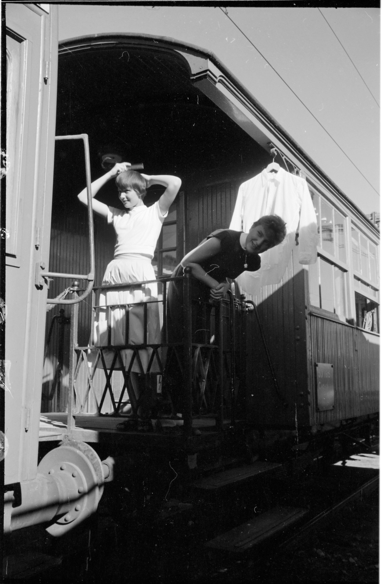 Resenärer ombord tåghem. Torkning av kläder. Statens Järnvägar, SJ C4a 1615.