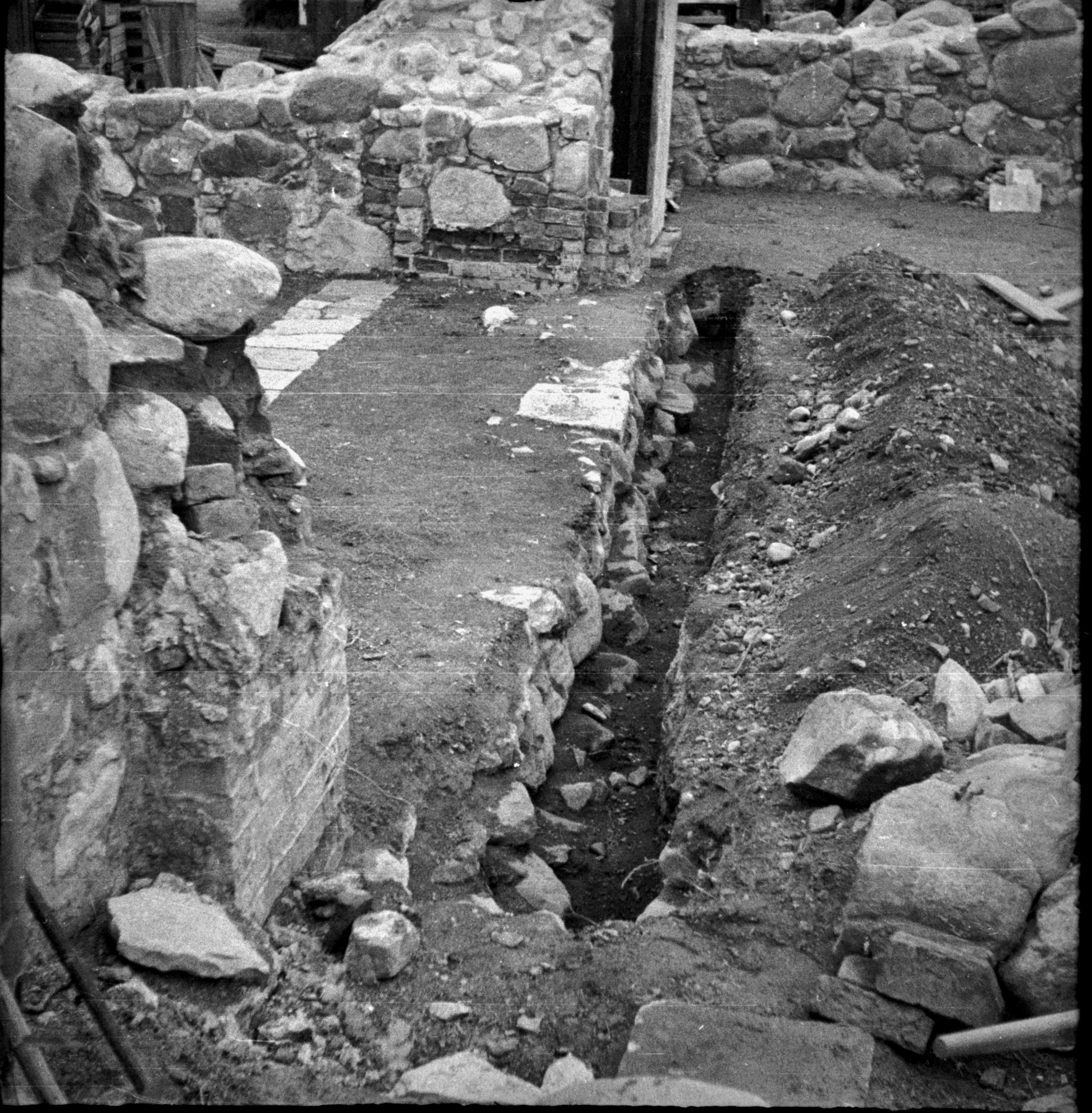 Västra väggens grundmur mot norr.