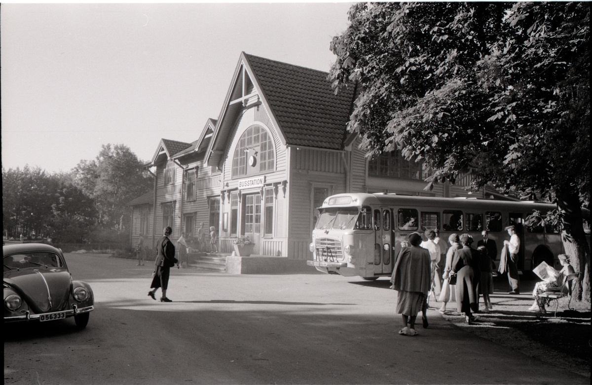 Statens Järnvägar, SJ-Buss vid busstation. Före detta stationshuset vid Lund - Bjärreds Järnväg, LBJ.
