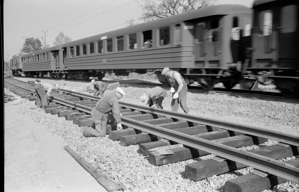 Dubbelspårsarbete, rälsutläggning.