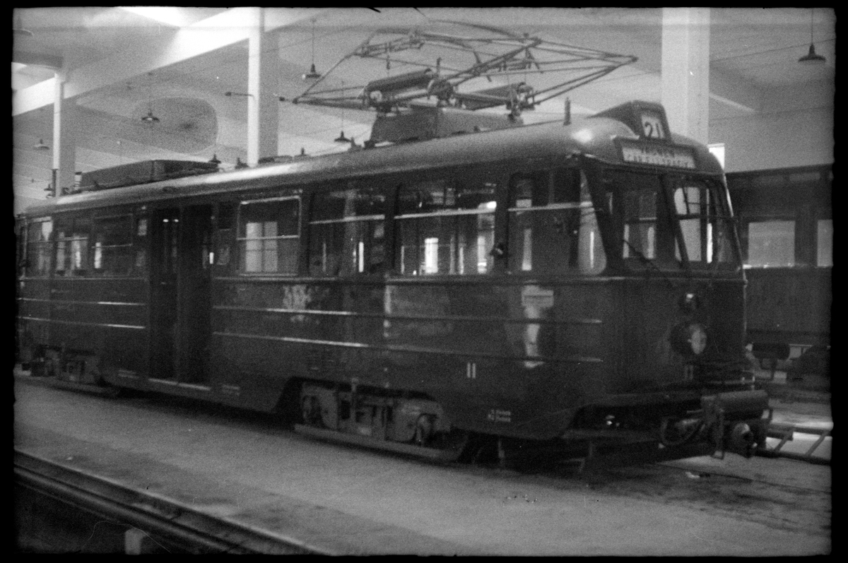 Lidingö Trafik Aktiebolag, LiB A24(A) 11 "ängbyvagn" uppställd i Hersbyholms vagnhall.