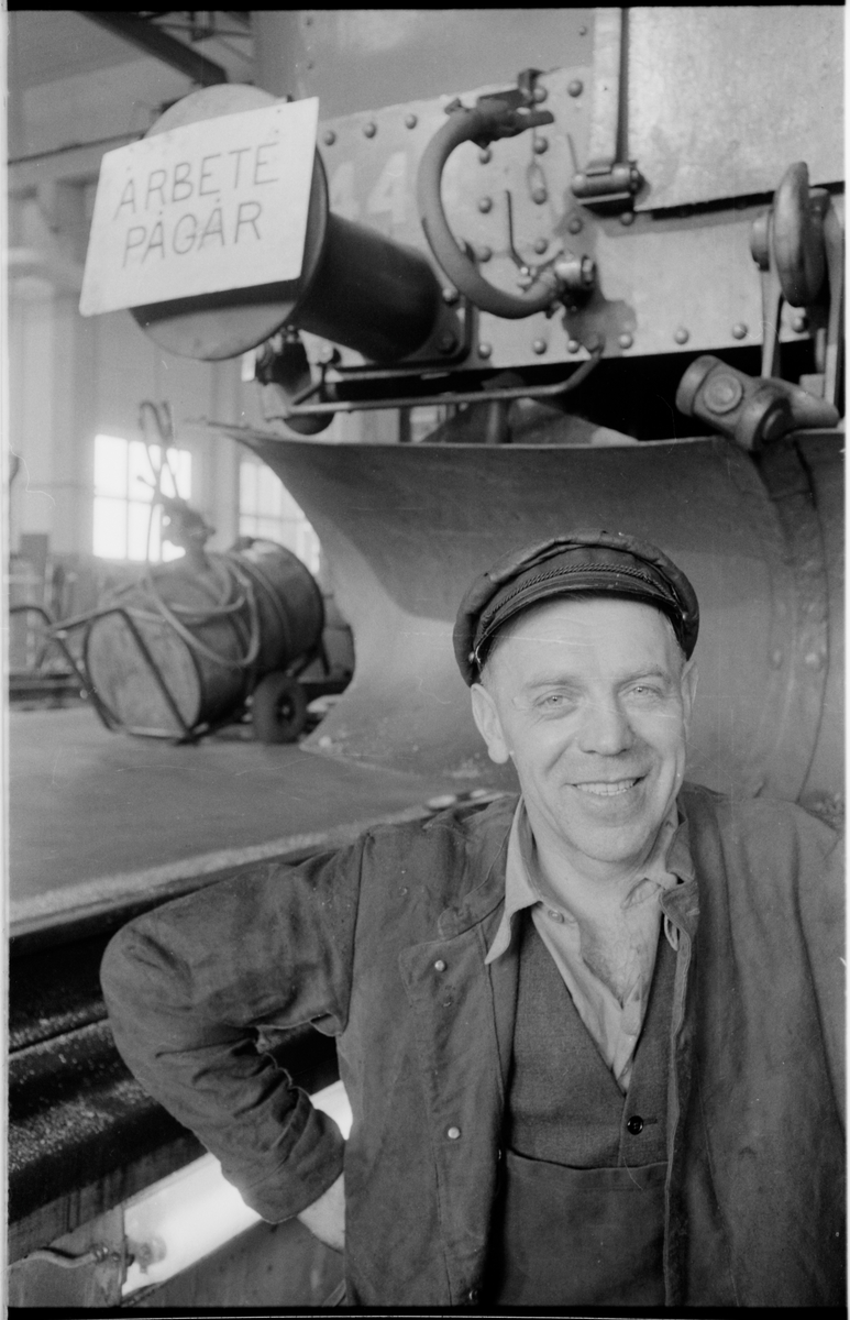 Verkstadsarbetare ståendes i smörjgropen framför Elloket.