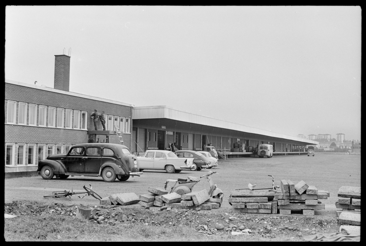 Uppsättning av skylt vid SJ godsexpedition, Gävle godsbangård.