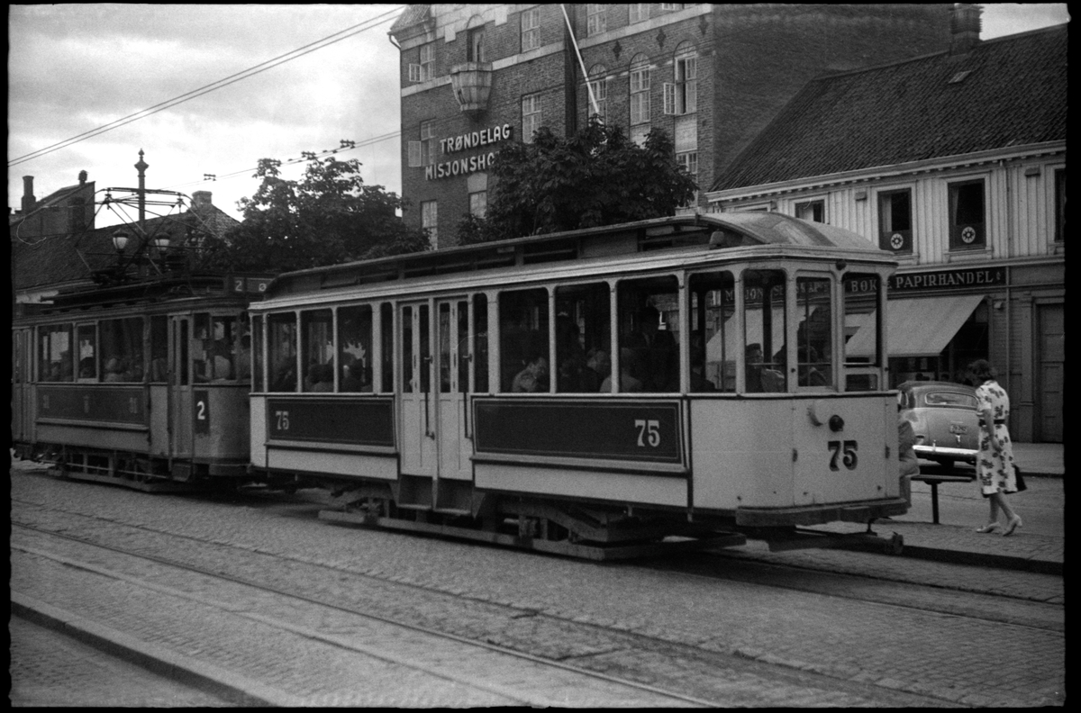 Trondheim Sporvei, TS 75 och TS 31 vid hållplats i Trondheim trafikerar linje 2.