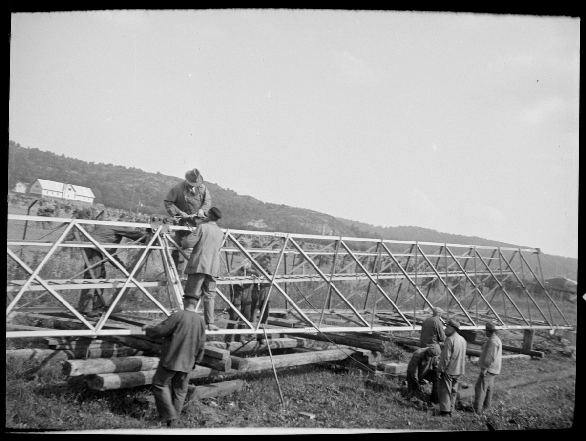 Titel: Linjen mellan Sävenäs - Partille, resning av belysningsmast.