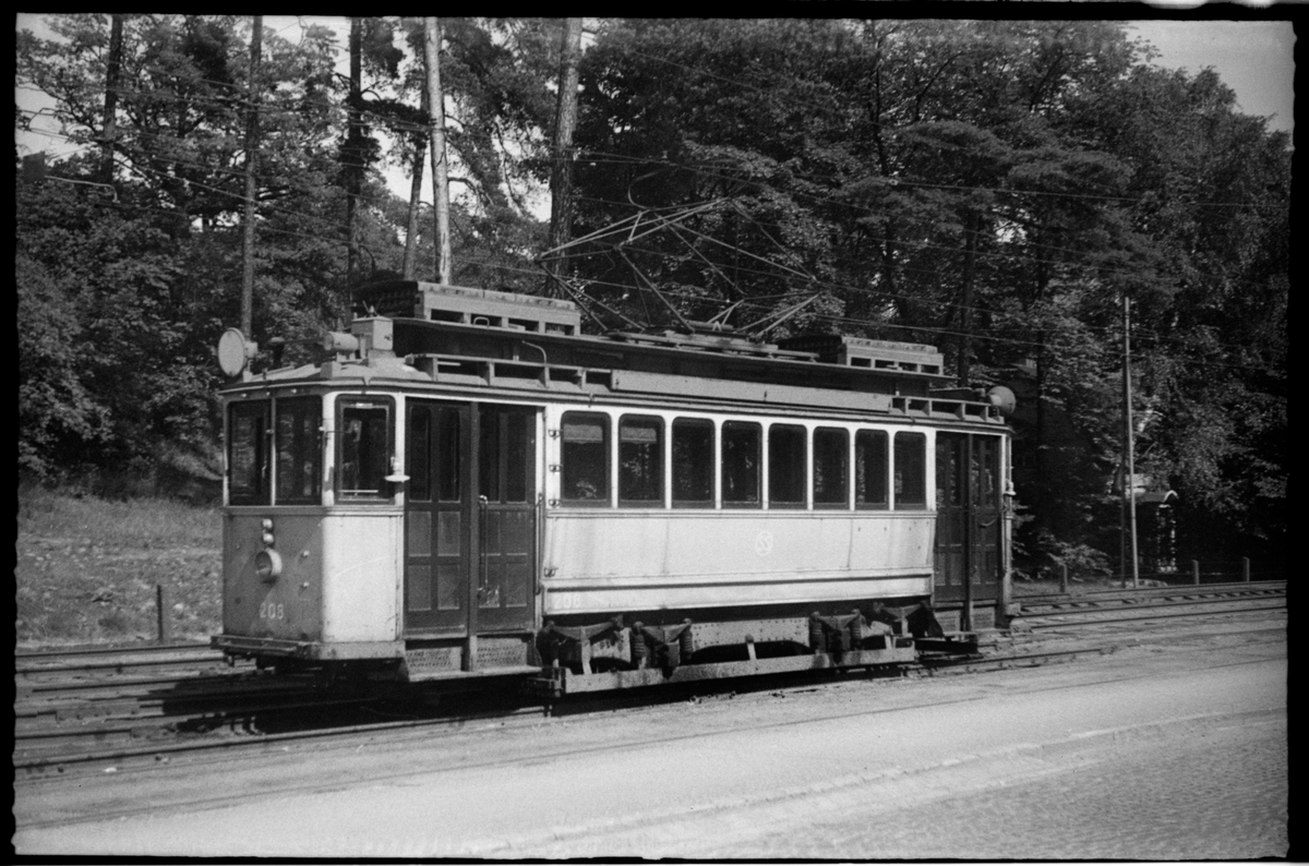 Aktiebolaget Stockholms Spårvagnar, SS A8 208 vid hållplats.
