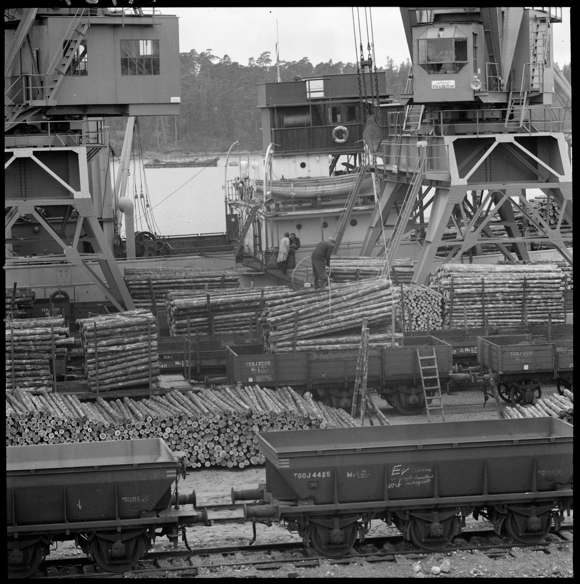 Lastning. Trafikaktiebolaget GrängesbergOxelösunds Järnvägar, TGOJ M4 4425, TGOJ M2 3200.