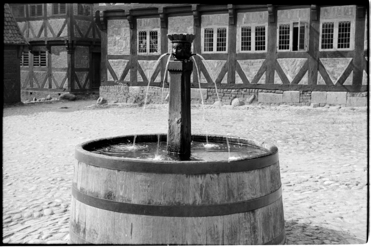 Fontän vid Den Gamle By, friluftsmuseét i Århus.