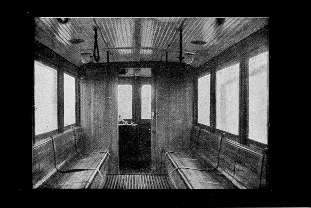 Interiör från, Luossavaara-Kiirunavaara Aktiebolag, LKAB spårvagn som gick i trafik i Kiruna.