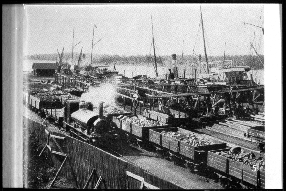 Titel: Malmutskeppning och lastning för hand i Oxelösunds hamn.