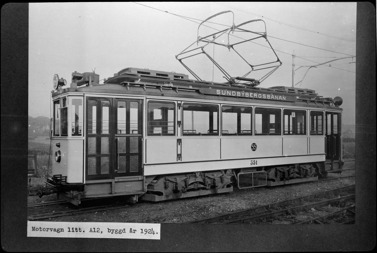 Aktiebolaget Stockholms Spårvägar, SS A12 351, Sundbybergsbanan. Fotograferad vid Hagalund järnvägsstation.