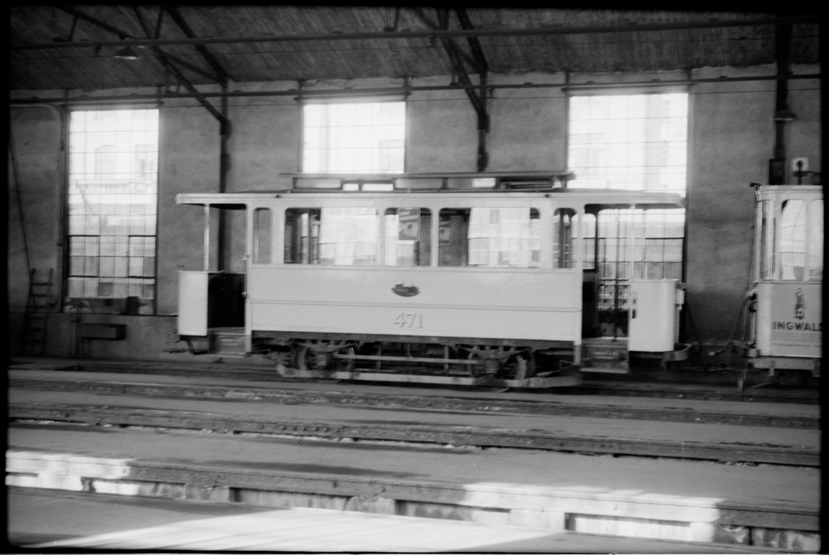 Aktieselskabet Oslo Sporveier, OS släpvagn 471 i vagnhallen.