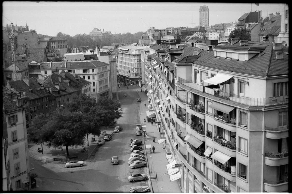 Vy över Rue Central i Lausanne. Fotot taget från Bessières Bridge.