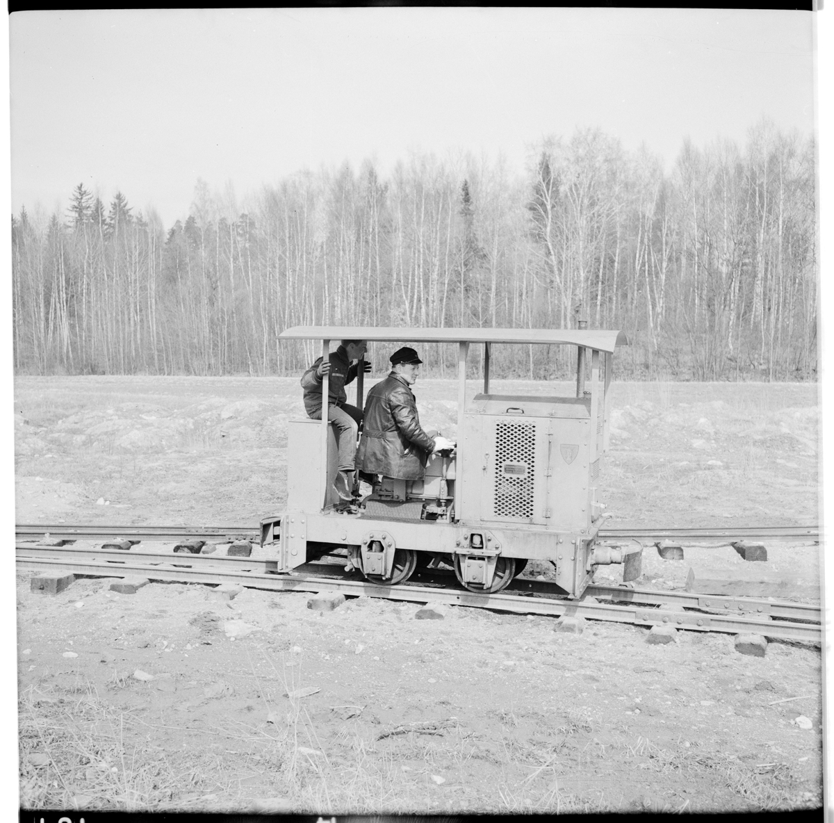 Industrilok med förare och passagerare.
