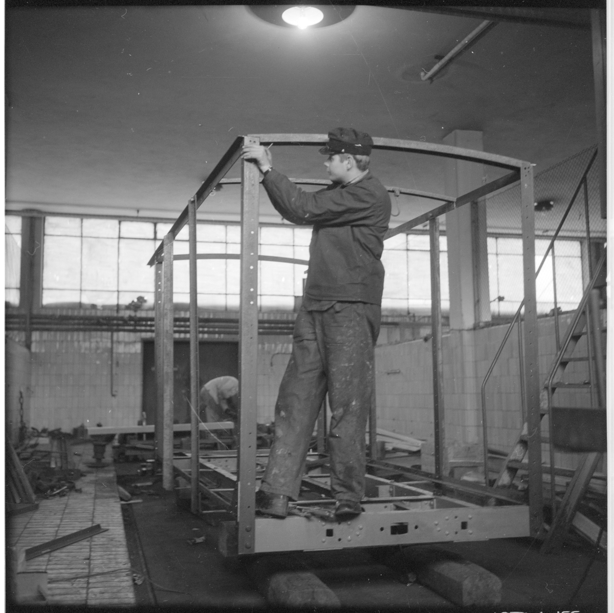Titel: Montering av ram på godsvagn. Troligen vid Museijärnvägen, ÖSlJ Östra Södermanlands Järnväg, ÖSlJ.