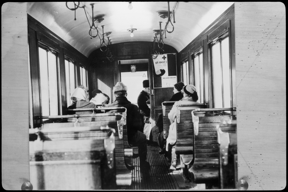 Resenärer i Luossavaara-Kiirunavaara Aktiebolag, LKAB spårvagn.