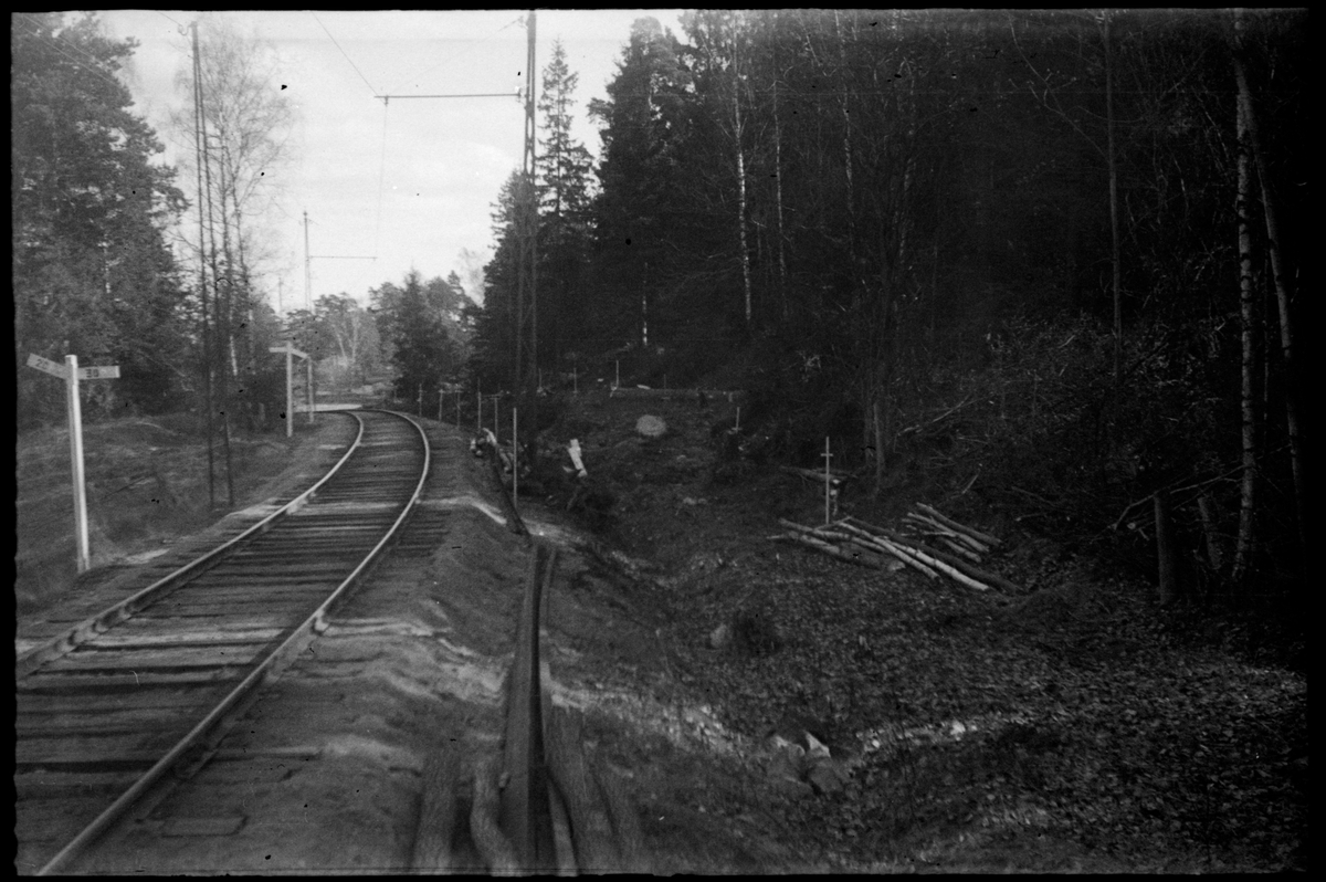 Spårväg, utmätning bredvid spåret till höger i bild.