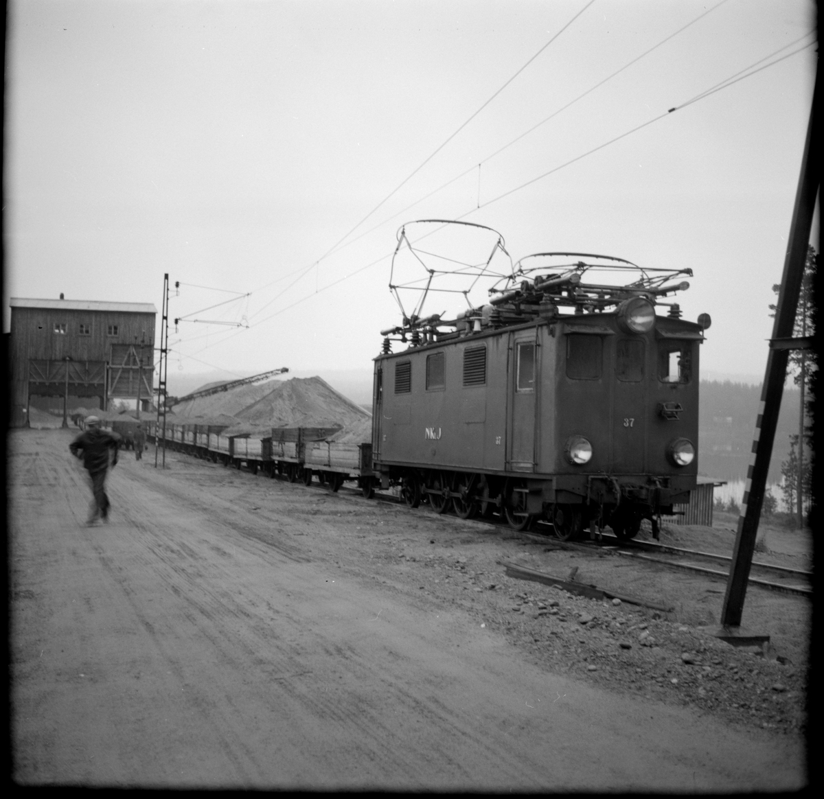 Nordmark - Klarälvens Järnväg, NKlJ ellok 37 på spåret vid grustag.