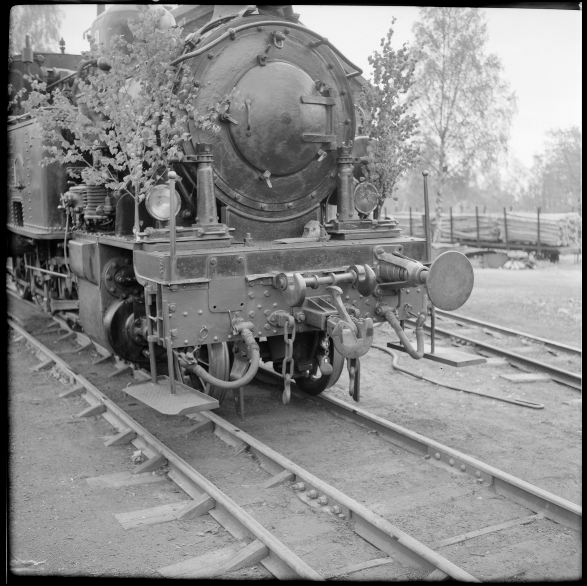 Fronten på ånglok Marma-Långrör AB, Vallvik. En buffert saknas.