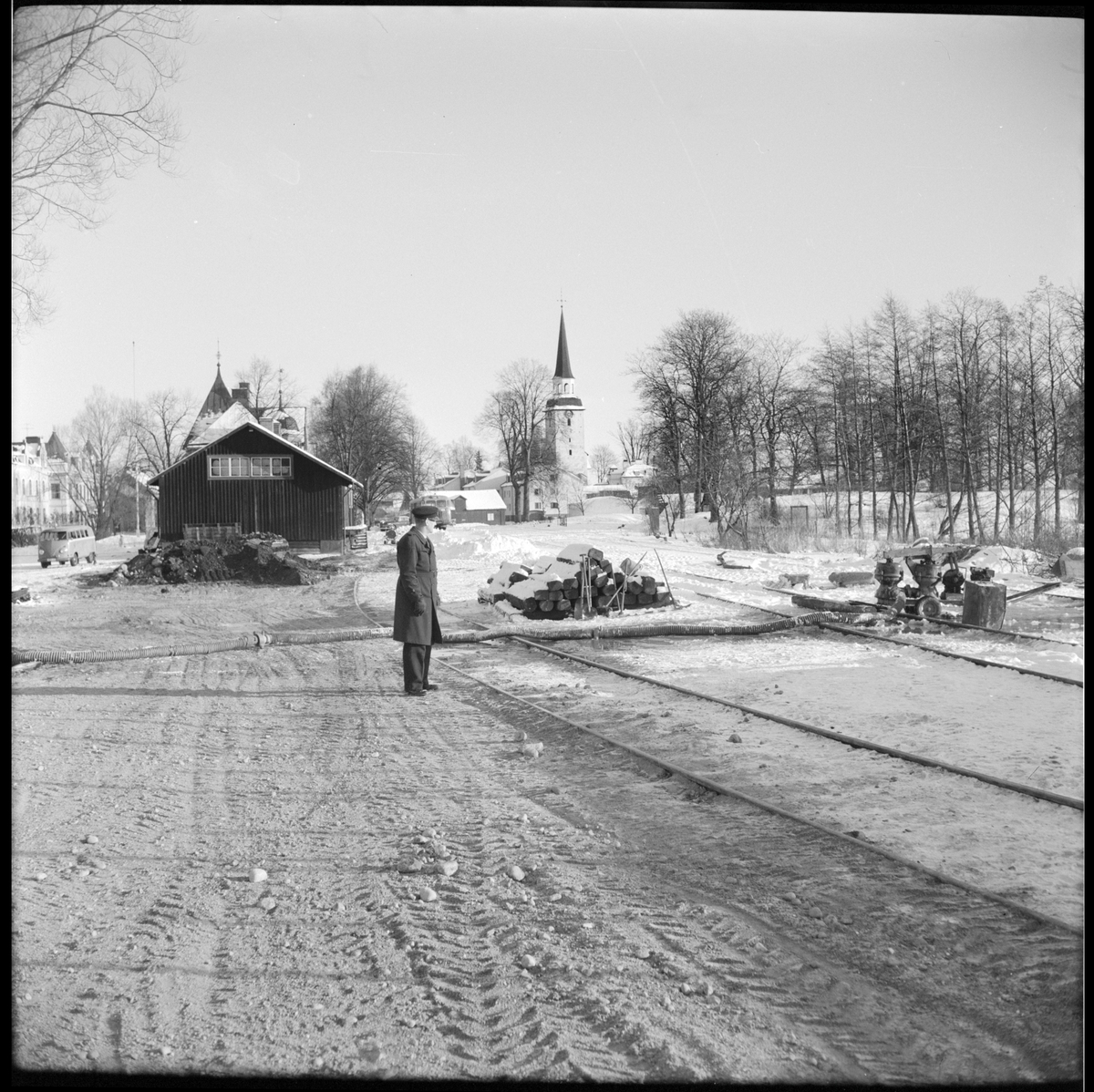 Man på järnvägsstationen i Mariefred som användes av Museijärnväg Östra Södermanlands Järnväg, ÖSlJ.