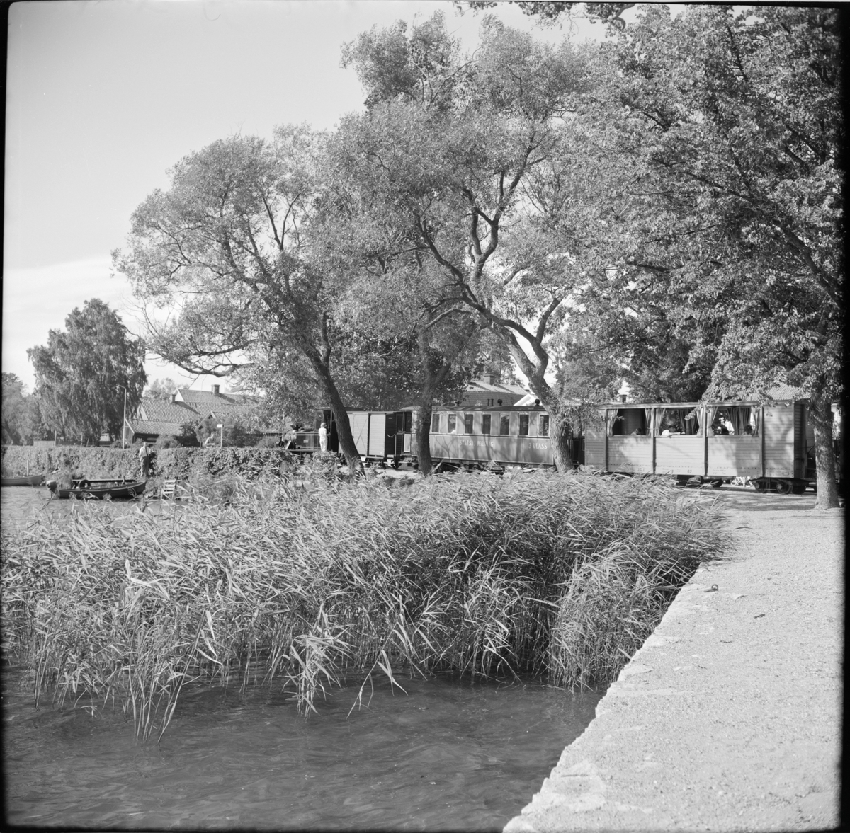 Museijärnvägen, Östra Södermanlands Järnväg, ÖSlJ ångtåg på hållplats vid ångbåtsstationen i Mariefred.