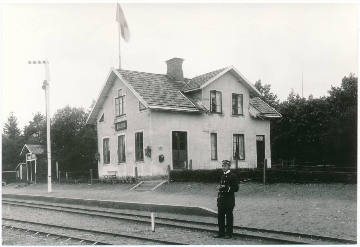 Stationen öppnad 1895 för allmän trafik. En- och enhalvvånings stationshus i trä. Efter en brand 1902 byggdes nytt stationshus. Under åren moderniserades stationen flera gången. på grund av minskade trafik nedlades stationen 1984. På fotot syns Stationsmästare J.W. SJöholm.