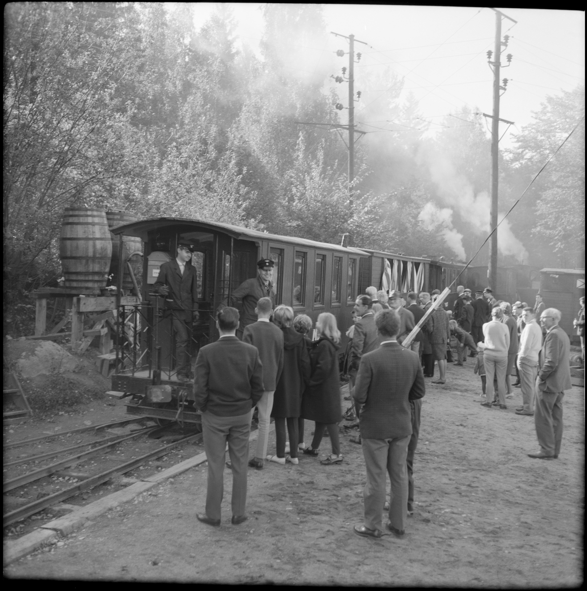 Resande bredvid Museijärnväg Östra Södermanlands Järnväg, ÖSlJ. Personal på Munkedals Järnväg, MJ personvagn.