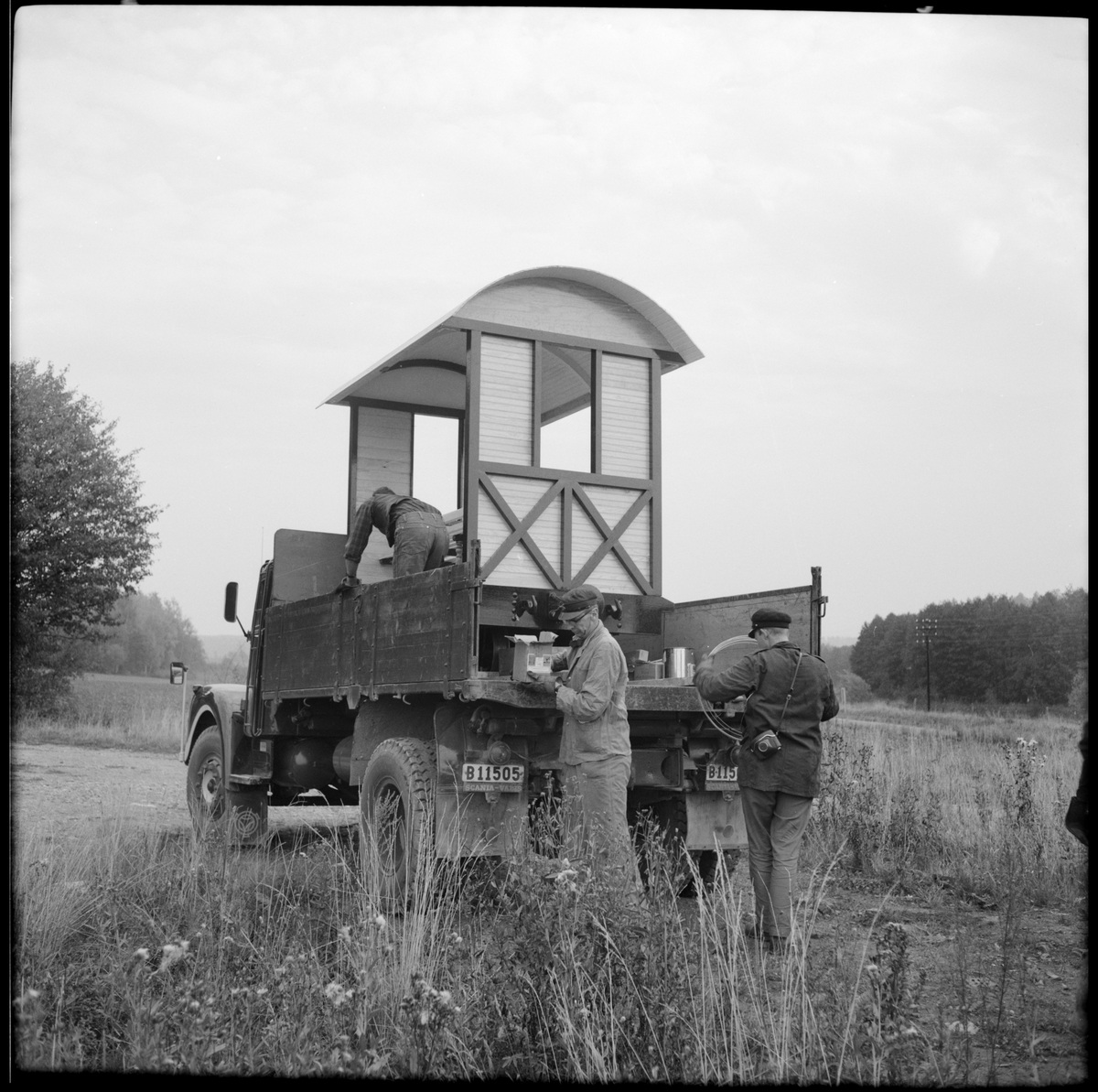 Museijärnväg Östra Södermanlands Järnväg, ÖSlJ. Nytillverkad öppen personvagn lastad på lastbil.