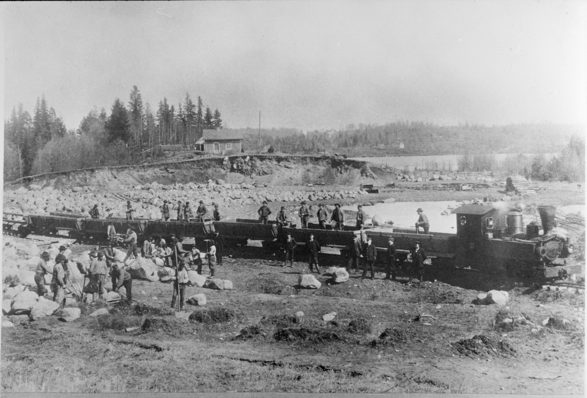 Jönköping - Gripenbergs Järnväg, JGJ ångtåg vid norra delen av Förnäs där det bedrevs schaktningsarbete för att fylla upp sjön.