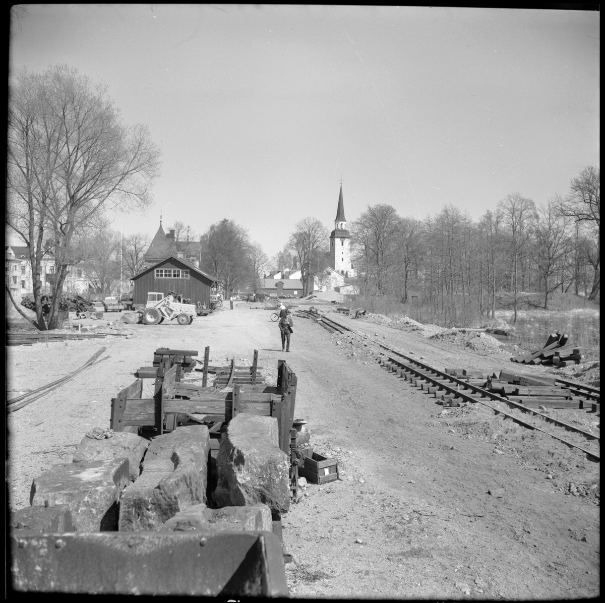 Bangården i Mariefred där bangårdsarbete påbörjats inför Museijärnväg Östra Södermanlands Järnväg, ÖSlJ:s verksamhet.
