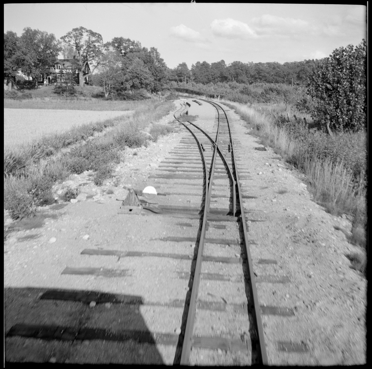 Vy över smalspår vid Hjorthagen station i Läggesta som tillhör Museijärnvägen, Östra Södermanlands Järnväg, ÖSlJ.