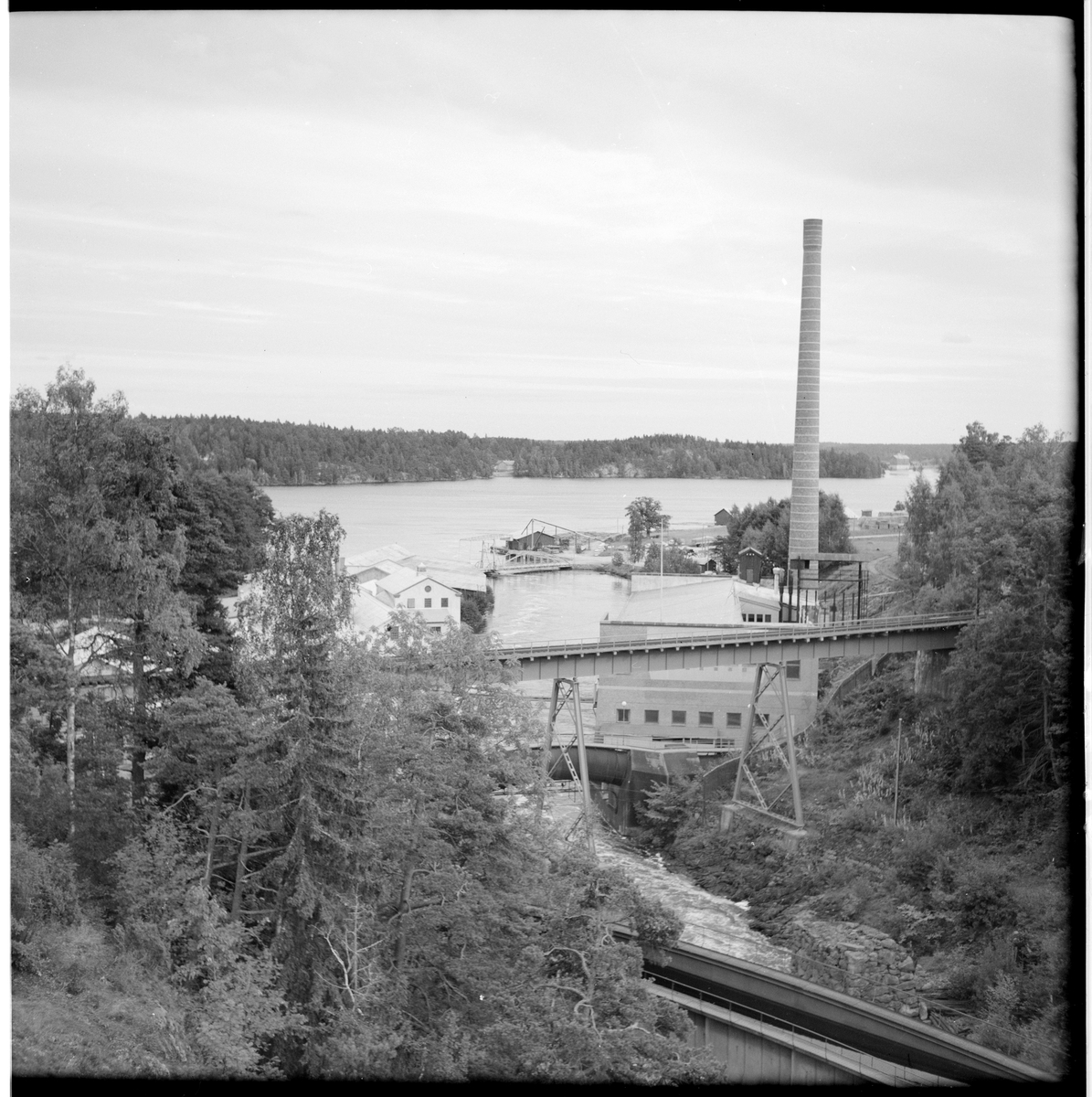 Vid vattenverket i Håverud ses Dal - Västra Värmlands Järnväg, DVVJ:s bro över Håverudsforsen.