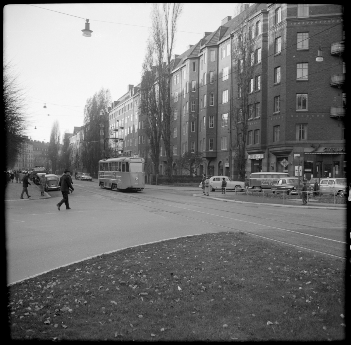 Aktiebolaget Stockholms Spårvägar, SS A25 424 "mustang" linje 5 Karlberg - Östra Station i trafik på Karlbergsvägen 52.