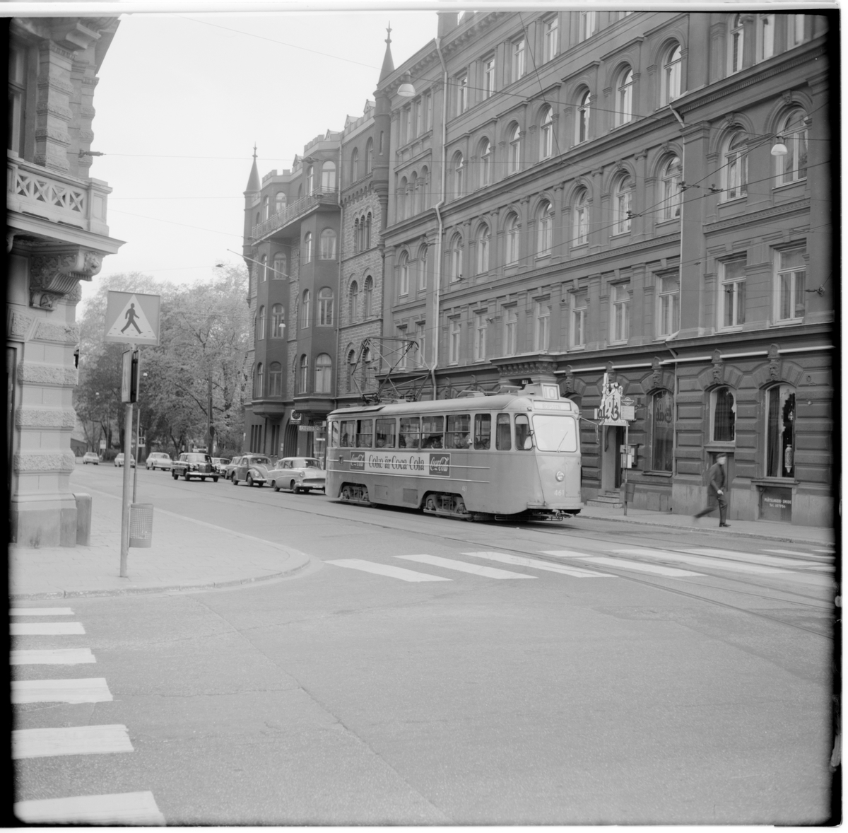 Aktiebolaget Stockholms Spårvägar, SS A25 461 "mustang" linje 10 Värtan - Slussen - Hornstull på Sturegatan vid Valhallavägen.
