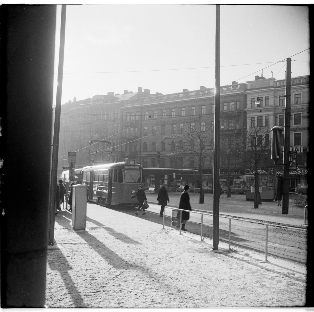 Aktiebolaget Stockholms Spårvägar, SS släpvagn linje 1 Norrmalmstorg - Rosenlund vid hållplats Stureplan.