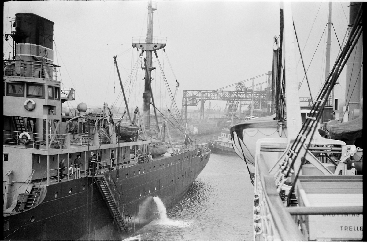 Fartyg och tågfärja S/S Drottning Victoria vid hamn i Gdansk.