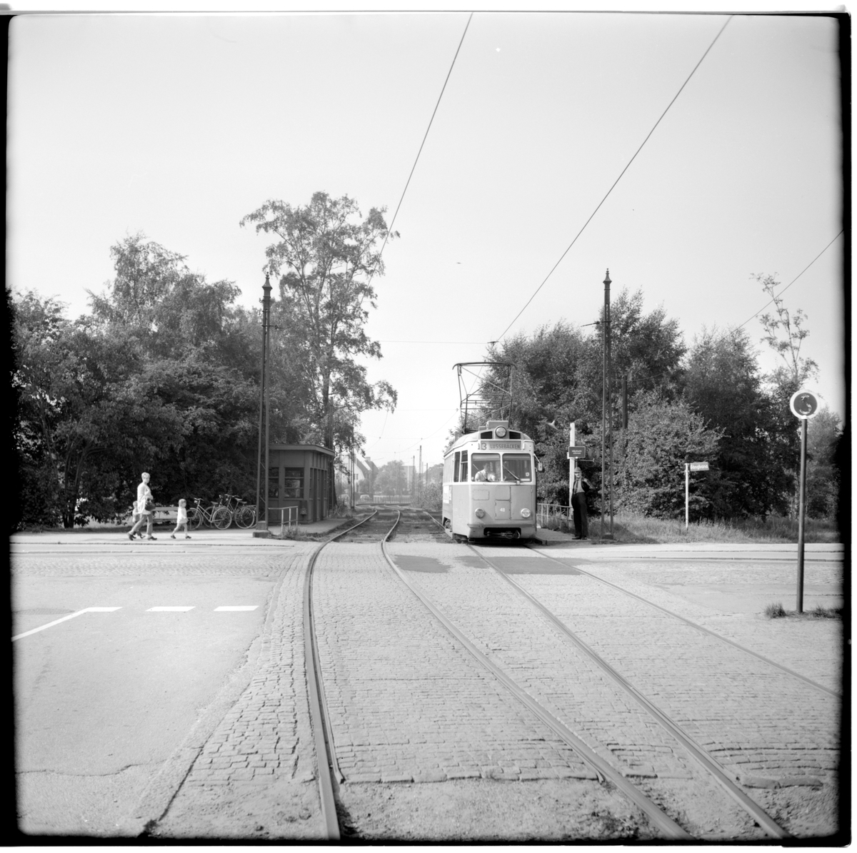 Helsingborgs Stads Spårvägar, HSS F2 48 linje 3 Lussebäcken vid hållplats på Planteringsvägen - Dècauvillegatan sedd västerut.