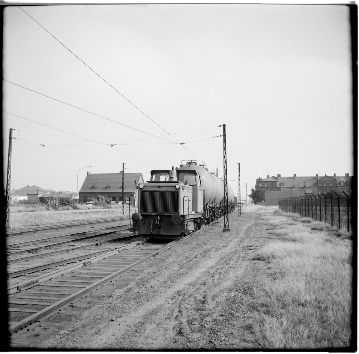 Kopparverkets diesellok sätter ut vagnar till Helsingborgs Stads Spårvägar, HSS.