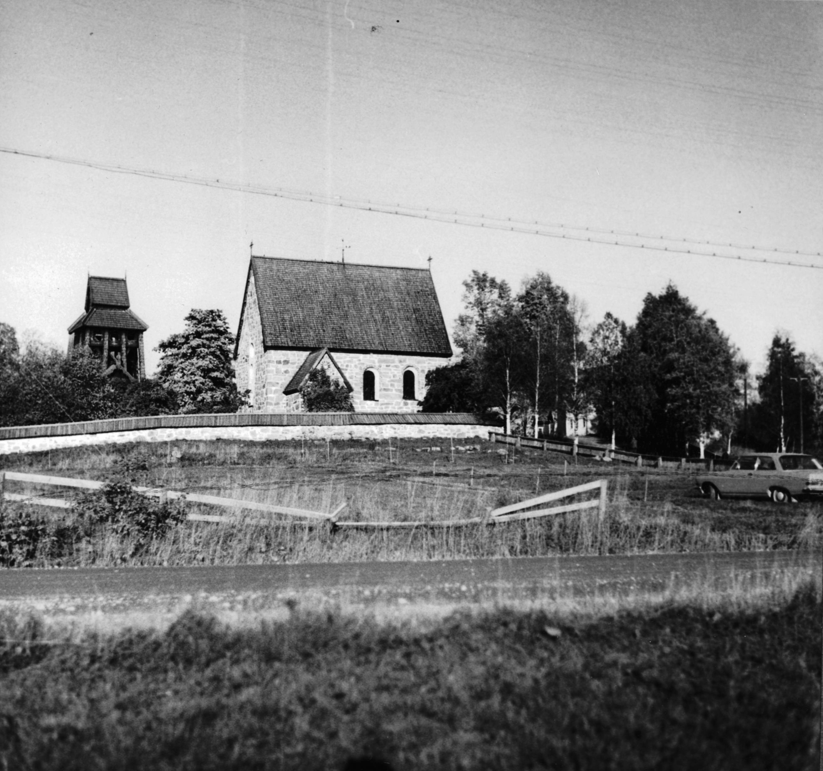 Vägbegränsning runt kyrkan mot norr.