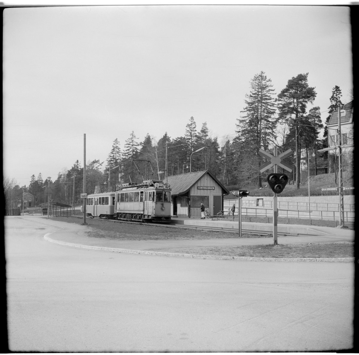 Aktiebolaget Stockholms Spårvägar, SS A11 med släpvagn på hållplats Centralvägen.