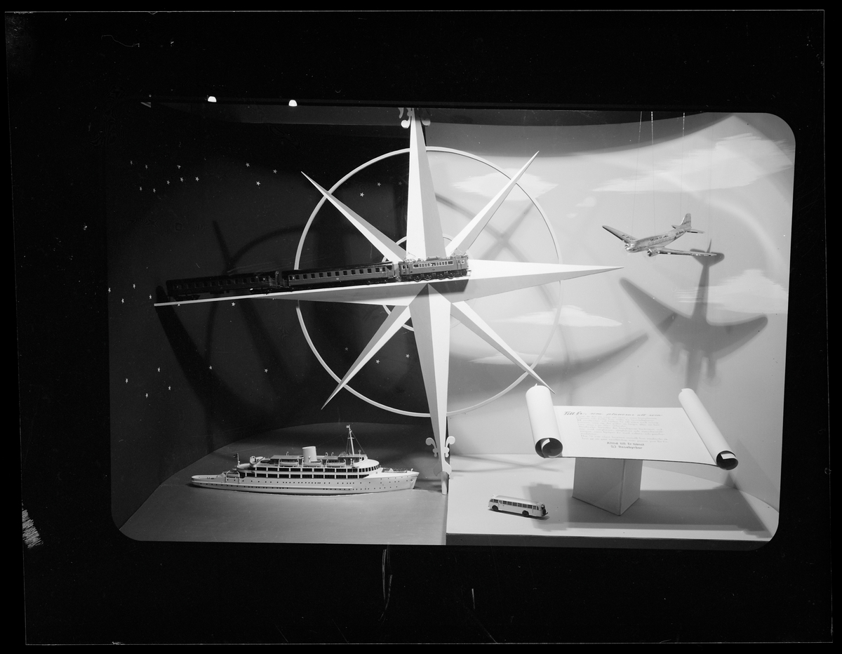 Kuliss med modeller uppbyggd för att göra reklam för SJ Resebyrå.