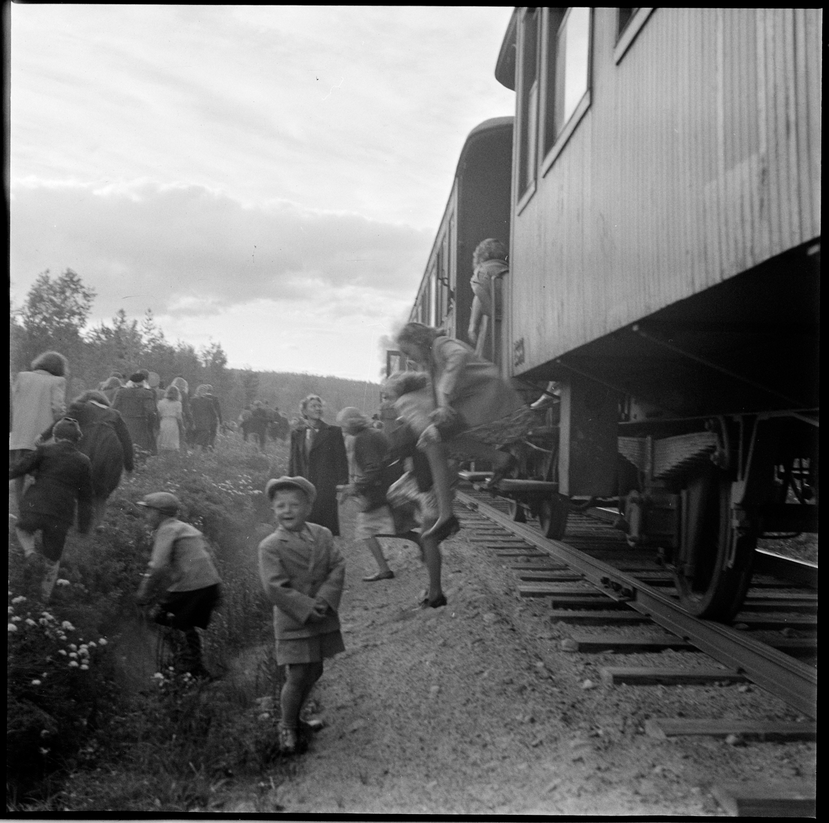 Passagare på väg upp till Luppioberget från järnvägen på linjen mellan Övre Niemis och Alkullen.