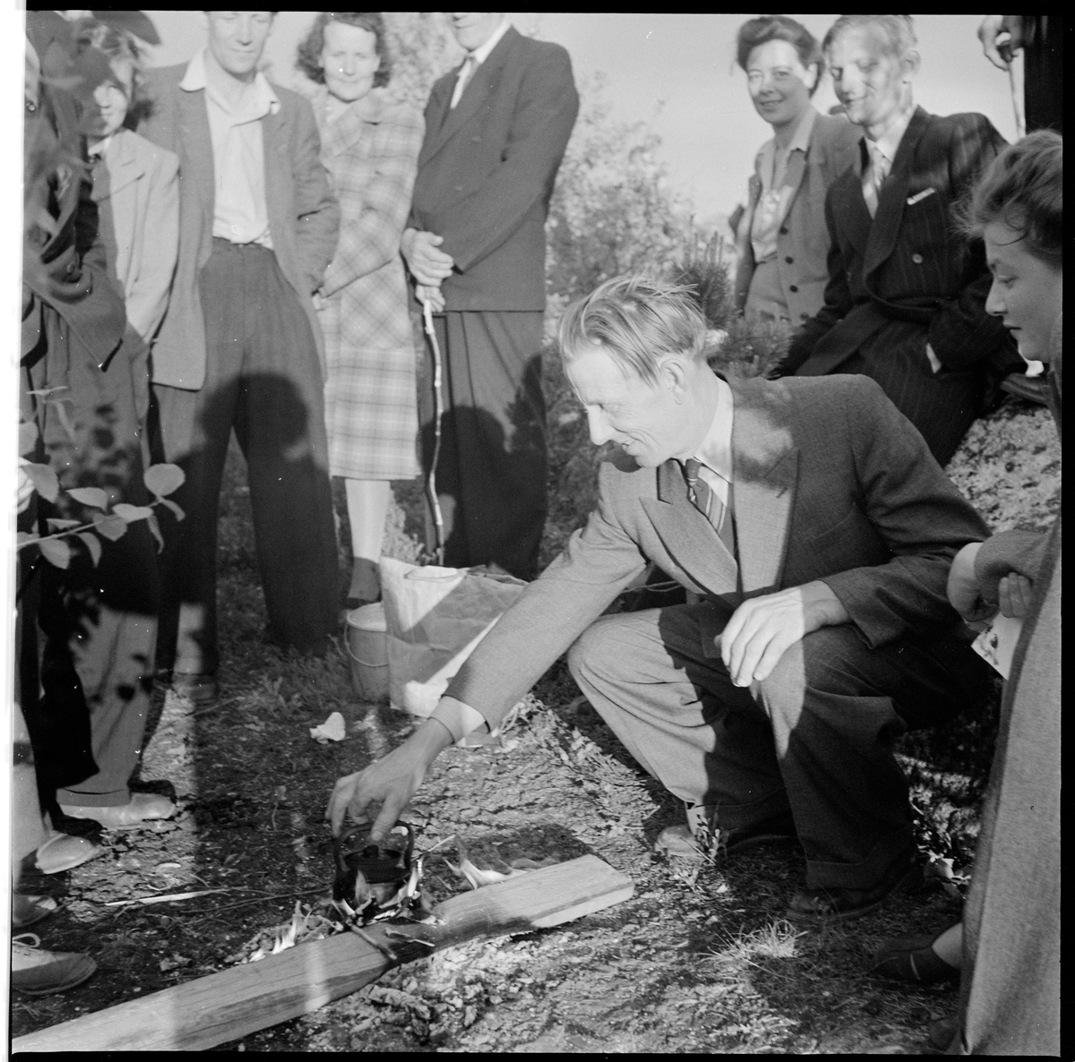 En man eldar och kokar kaffe på Luppioberget.